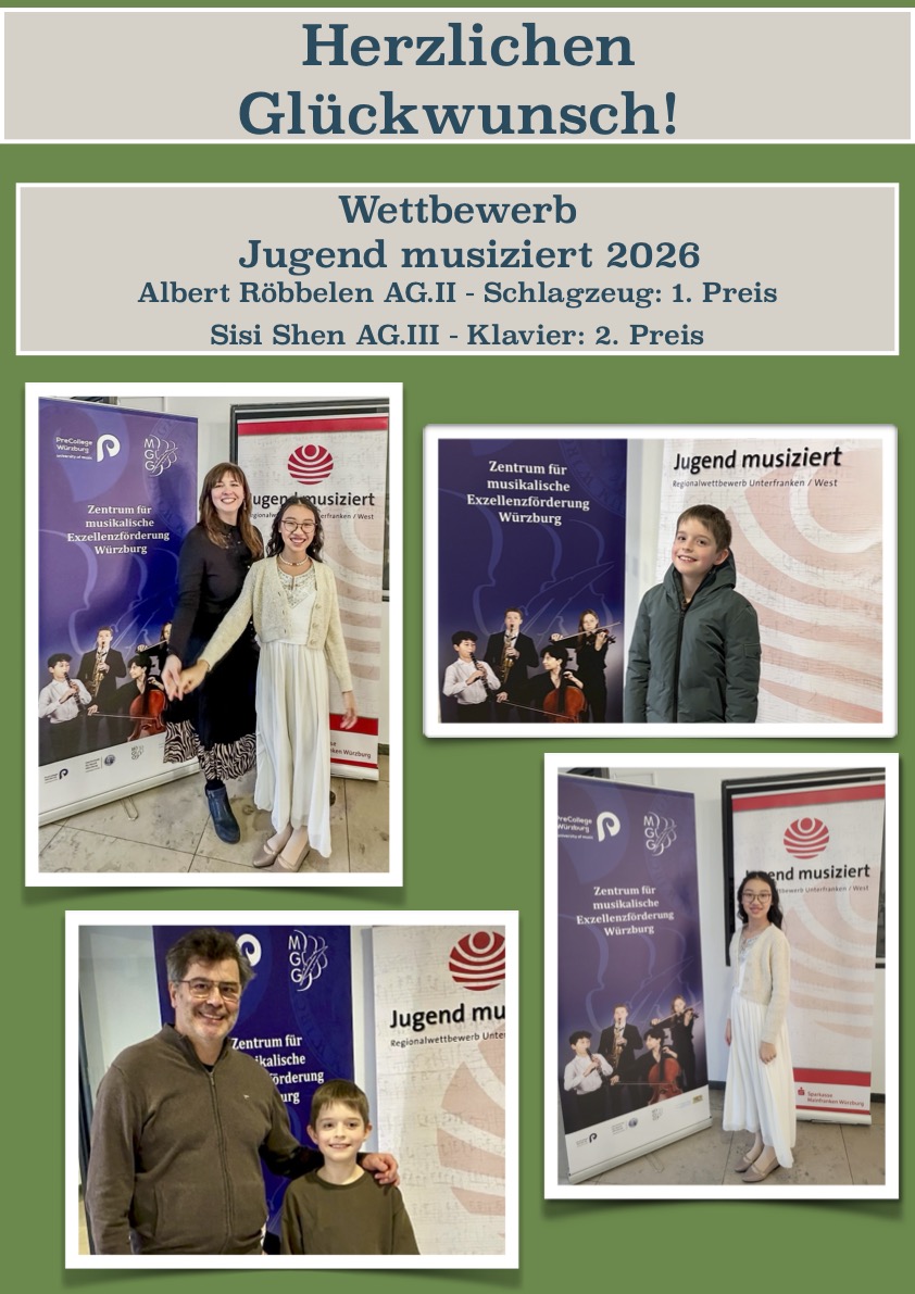 Diese Erfolge sind nicht nur das Ergebnis eines großen persönlichen Einsatzes der Schülerin und des Schülers, sondern auch Ausdruck der engagierten und qualifizierten pädagogischen Arbeit der Lehrkräfte, die die jungen Musiker mit Fachkompetenz, Geduld und Begeisterung auf ihrem musikalischen Weg begleiten.